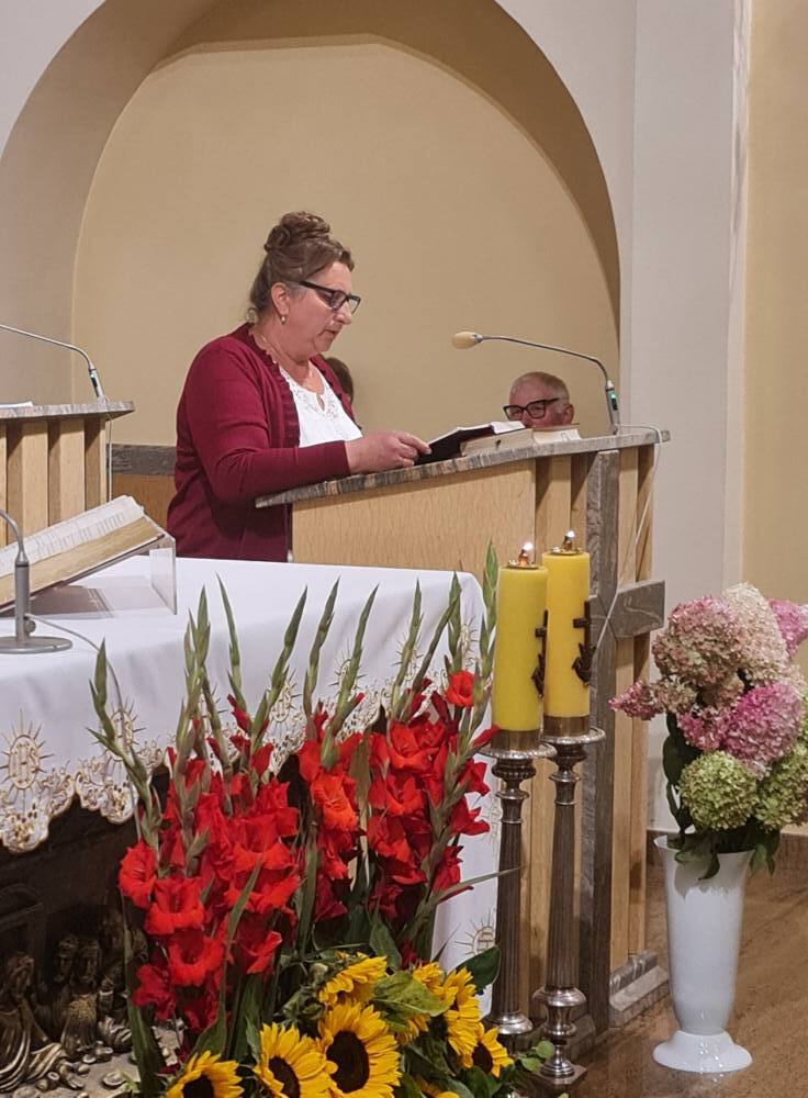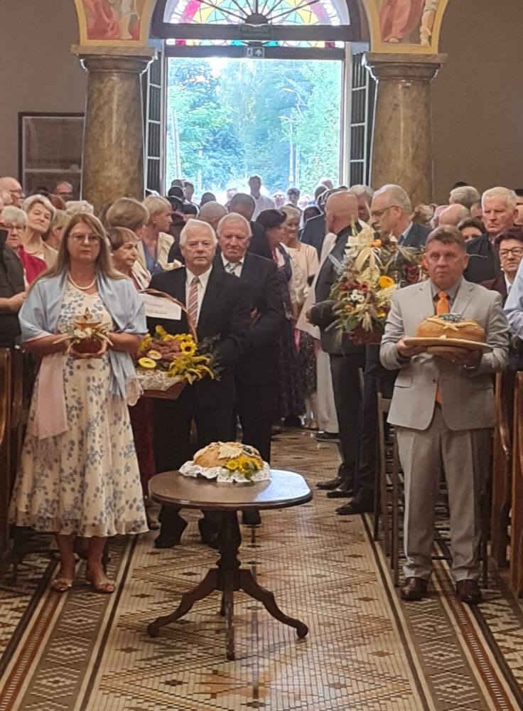 7 września przed kościołem rozpoczęliśmy dożynki parafialne, następnie odprawiono uroczystą sumę, w której składaliśmy dziękczynienie Bogu za tegoroczne plony. Wieńce dożynkowe poświęcił ks. proboszcz Włodzimierz Kujawin.